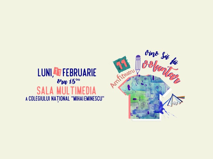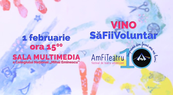 Hei, tu! Vino! Ne vedem LUNI, 11 februarie la SALA MULTIMEDIA a Colegiului Național „Mihai Eminescu” Botoșani la ora 15.oo. Vino SăFiiVoluntar! Vii, notezi ce știi și nu iei notă. Intri în echipa voluntarilor AmFiTeatru 11 la departamentul în care te vezi 😉 și în timpul festivalului - 19-23 aprilie 2019 - vei purta un … Continuă lectura Vino SăFiiVoluntar!