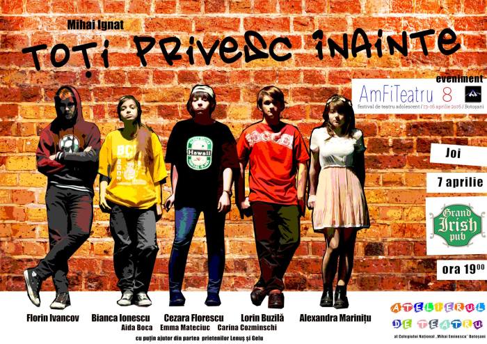 Sunt puține lucruri pe care ni le dorim mai mult decât curajul de a fi liberi, și asta mai ales în perioada adolescenței. Această dorință e una din pietrele de temelie ale festivalului de teatru adolescent AmFiTeatru și cu atât mai mult a spectacolului „Toți privesc înainte” de Mihai Ignat. Un joculeț, spectacolul reușește, … Continuă lectura Toți privesc înainte